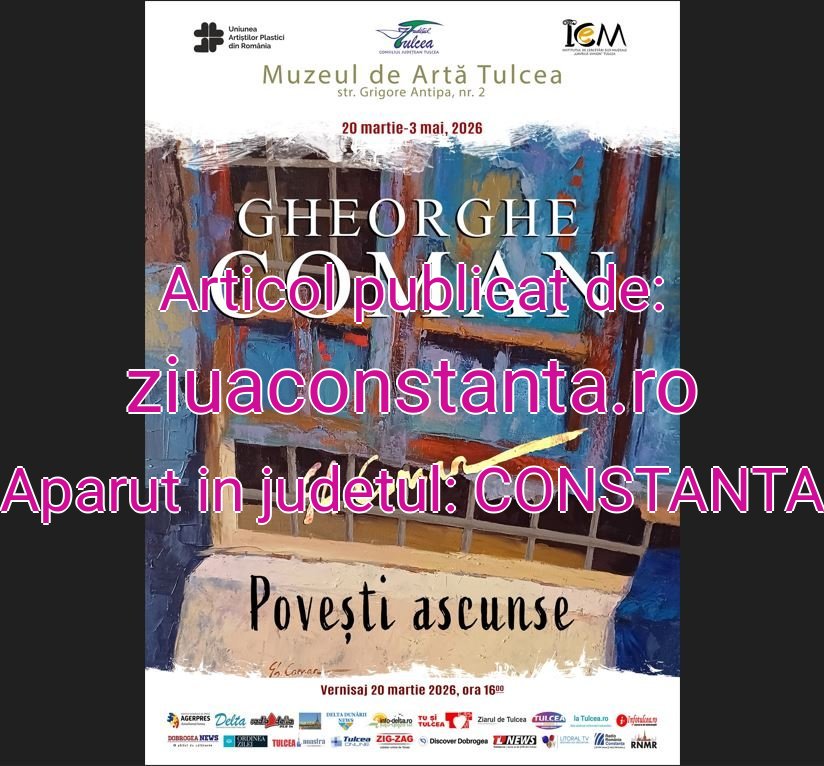 Complexul Muzeal de Patrimoniu Cultural Nord-dobrogean, din cadrul Institutului de Cercetări Eco-muzeale „Gavrilă Simion” Tulcea anunță vernisajul expoziției „Povești ascunse”, programat vineri, 20 martie 2026, ora 16:00, la Muzeul de Artă Tulcea.Expoziția reunește o selecție de 58 de lucrări realizate în tehnici specifice picturii, reprezentative pentru preocupările plastice din perioada 2015–2026 ale artistului contemporan Gheorghe Coman.Gheorghe Coman s-a născut în anul 1961, în Valea Călugărească, județul Prahova și este un artist plastic cu un simț cromatic deosebit, foarte activ pe scena artistică românească. Este membru al Filialei București a Uniunii Artiștilor Plastici din România și expune cu consecvență începând din anul 1997.Expoziția „Povești ascunse” va putea fi vizitată la parterul Muzeului de Artă Tulcea (str. Grigore Antipa nr. 2), până în data de 3 mai 2026, de marți până duminică, în intervalul orar 09:00–17:00. Taxa de vizitare a expozițiilor muzeului este de 20 de lei, 10 lei pentru pensionari și 5 lei pentru preșcolari, elevi și studenți.Citește și: