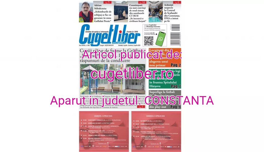 Iată titlurile din acest WEEKEND ale ziarului CUGET LIBER! cugetliber.ro 3 aprilie 2026 Acțiune FacebookXPinterestWhatsApp < 1 min citire Sursa: https://cugetliber.ro/stiri-actualitate-iata-titlurile-din-acest-weekend-ale-ziarului-cuget-liber-551763 Acțiune FacebookXPinterestWhatsApp Ultimă oră cugetliber.ro Descoperire tragică pe A2. Șofer de TIR găsit mort într-o parcare Robo Stiri - 3 aprilie 2026 cugetliber.ro Descoperire tragică pe A2. Șofer de TIR găsit mort într-o parcare Robo Stiri - 3 aprilie 2026 cugetliber.ro Descoperire tragică pe A2. Șofer de TIR găsit mort într-o parcare Robo Stiri - 3 aprilie 2026 cugetliber.ro „Buză interlopul” face ravagii în autobuzele din Constanța! Robo Stiri - 3 aprilie 2026 Același autor cugetliber.ro Descoperire tragică pe A2. Șofer de TIR găsit mort într-o parcare 3 aprilie 2026 cugetliber.ro Descoperire tragică pe A2. Șofer de TIR găsit mort într-o parcare 3 aprilie 2026 cugetliber.ro Descoperire tragică pe A2. Șofer de TIR găsit mort într-o parcare 3 aprilie 2026 cugetliber.ro „Buză interlopul” face ravagii în autobuzele din Constanța! 3 aprilie 2026