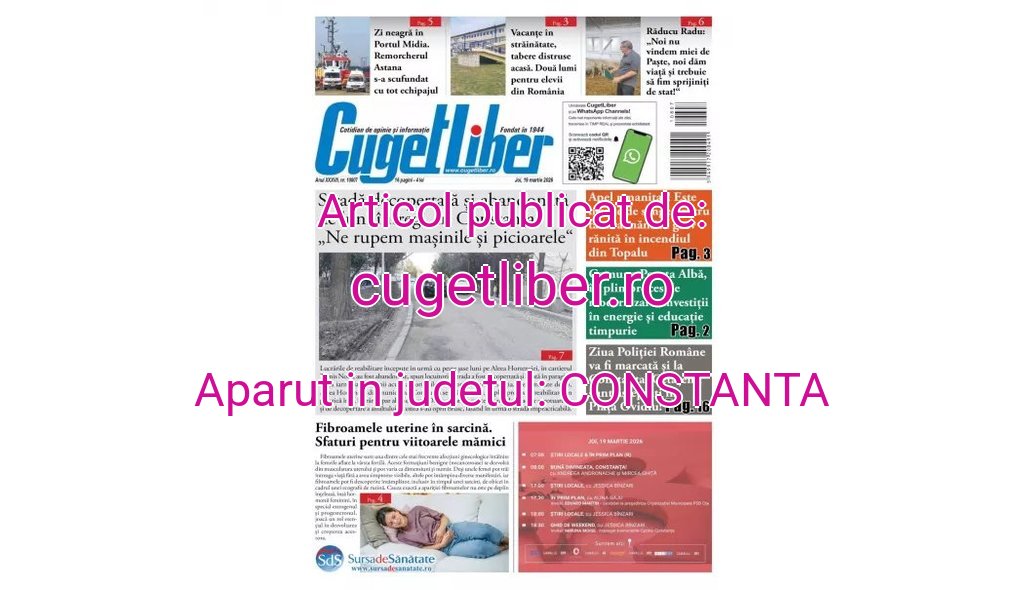 Iată titlurile zilei din data de 19 MARTIE ale ziarului CUGET LIBER! cugetliber.ro 18 martie 2026 Acțiune FacebookTwitterPinterestWhatsApp < 1 min citire Sursa: https://cugetliber.ro/stiri-actualitate-iata-titlurile-zilei-din-data-de-19-martie-ale-ziarului-cuget-liber-550565?utm_source=cugetliber&utm_medium=site&utm_content=ultima-ora&utm_campaign=Slider – ultima ora Acțiune FacebookTwitterPinterestWhatsApp Ultimă oră replicaonline.ro Dominic Fritz, președintele USR, acuză PSD că urmărește noi alianțe, după blocajul din Parlament Robo Stiri - 18 martie 2026 jurnaluldearges.ro Sorin Tufan, fost fotbalist la Farul și Steaua, și-a pierdut viața într-un accident naval Robo Stiri - 18 martie 2026 bzi.ro Cine sunt cei 5 marinari români care au murit după ce o navă s-a scufundat în Portul Midia. Filmul tragediei de la malul mării Robo Stiri - 18 martie 2026 ziuaconstanta.ro Marinarul recuperat din mare de scafandri militari ar fi Sorin Tufan, comandantul remorcherului Astana Robo Stiri - 18 martie 2026 Același autor cugetliber.ro Tradiție, reflecție și respect reciproc la cina de iftar organizată de UDTR, la Constanța 18 martie 2026 cugetliber.ro Iată titlurile zilei din data de 19 MARTIE ale ziarului CUGET LIBER! 18 martie 2026 cugetliber.ro Trupul lui Sorin Tufan, recuperat din apele Portului Midia. Operațiunea de căutare a fost oprită 18 martie 2026 cugetliber.ro Trupul lui Sorin Tufan, recuperat din apele Portului Midia. Operațiunea de căutare a fost oprită 18 martie 2026