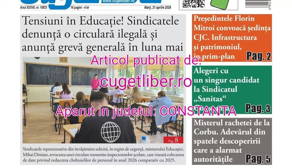 Iată titlurile zilei din data de 21 APRILIE ale ziarului CUGET LIBER! cugetliber.ro 20 aprilie 2026 Acțiune FacebookXPinterestWhatsApp < 1 min citire Sursa: https://cugetliber.ro/stiri-actualitate-iata-titlurile-zilei-din-data-de-21-aprilie-ale-ziarului-cuget-liber-552880 Acțiune FacebookXPinterestWhatsApp Ultimă oră ziuaconstanta.ro Președintele USR, Dominic Fritz: „Este o minciună mare că această criză politică ar fi declanșată în favoarea românilor“ Robo Stiri - 20 aprilie 2026 cugetliber.ro UPDATE Meci spectaculos 2-3 la Ovidiu. FCSB întoarce scorul după pauză, dar nici Farul nu se lasă Robo Stiri - 20 aprilie 2026 cugetliber.ro UPDATE Meci spectaculos 2-3 la Ovidiu. FCSB întoarce scorul după pauză, dar nici Farul nu se lasă Robo Stiri - 20 aprilie 2026 cugetliber.ro UPDATE Meci spectaculos 2-3 la Ovidiu. FCSB întoarce scorul după pauză, dar nici Farul nu se lasă Robo Stiri - 20 aprilie 2026 Același autor cugetliber.ro UPDATE Meci spectaculos 2-3 la Ovidiu. FCSB întoarce scorul după pauză, dar nici Farul nu se lasă 20 aprilie 2026 cugetliber.ro UPDATE Meci spectaculos 2-3 la Ovidiu. FCSB întoarce scorul după pauză, dar nici Farul nu se lasă 20 aprilie 2026 cugetliber.ro UPDATE Meci spectaculos 2-3 la Ovidiu. FCSB întoarce scorul după pauză, dar nici Farul nu se lasă 20 aprilie 2026 cugetliber.ro Farul – FCSB 1-0, la pauză. Gol marcat în min. 43 de Eduard Radaslavescu 20 aprilie 2026