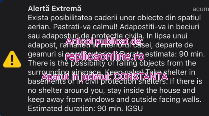 Sursa: https://www.replicaonline.ro/mesaj-ro-alert-in-nordul-judetului-tulcea-exista-risc-de-cadere-a-unor-obiecte-din-spatiul-aerian-653278?z=l
