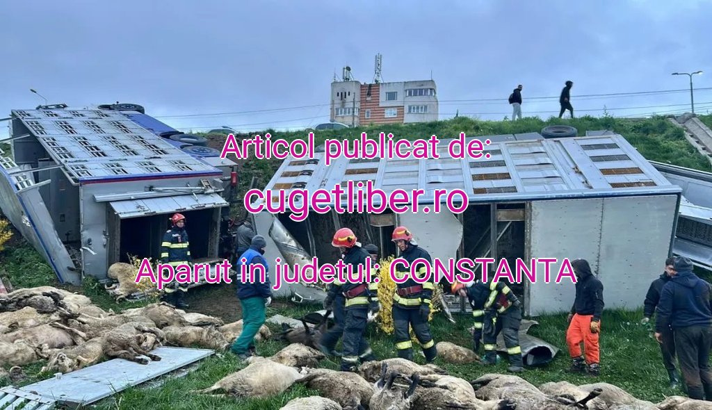 Conform primelor investigații efectuate de autorități, un ansamblu auto care transporta ovine a părăsit partea carosabilă și s-a răsturnat.