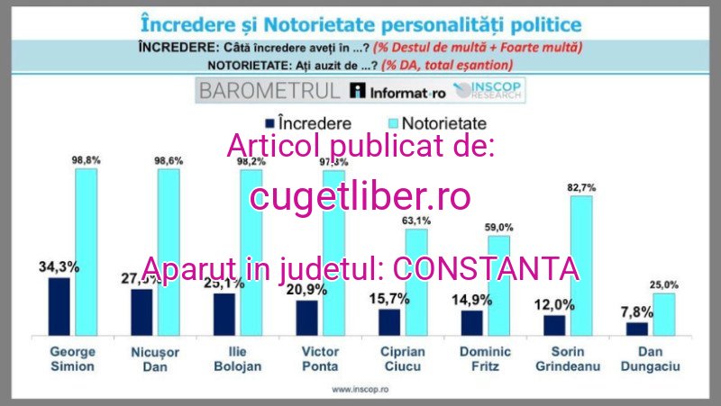 Potrivit INSCOP, nivelul mai scăzut al notorietății influențează și gradul de încredere pentru unii lideri politici, precum Ciprian Ciucu, Dominic Fritz sau Dan Dungaciu.