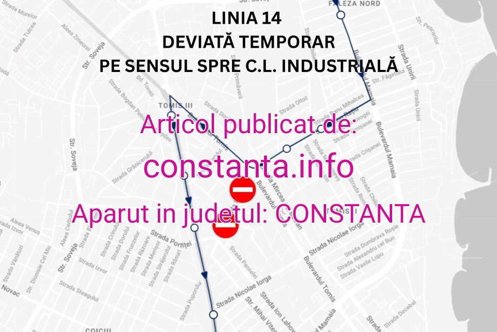 CT BUS anunță că, din cauza unei avarii RAJA de pe strada Poporului, între zonele Victoria și Trocadero, linia 14 este deviată temporar pe sensul spre Cap Linie Industrială.