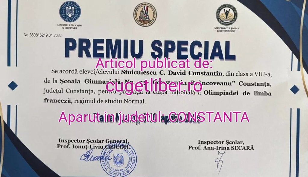 Elevul David Constantin Stoiculescu, din clasa a VIII-a, s-a remarcat prin rezultatele obținute, fiind distins cu Premiul special, o recunoaștere a muncii, talentului și dedicării sale. Rezultatul vine în urma unei pregătiri susținute și a unei pasiuni autentice pentru limba franceză, reflectând nu doar cunoștințele teoretice, ci și abilitățile de comunicare și interpretare.