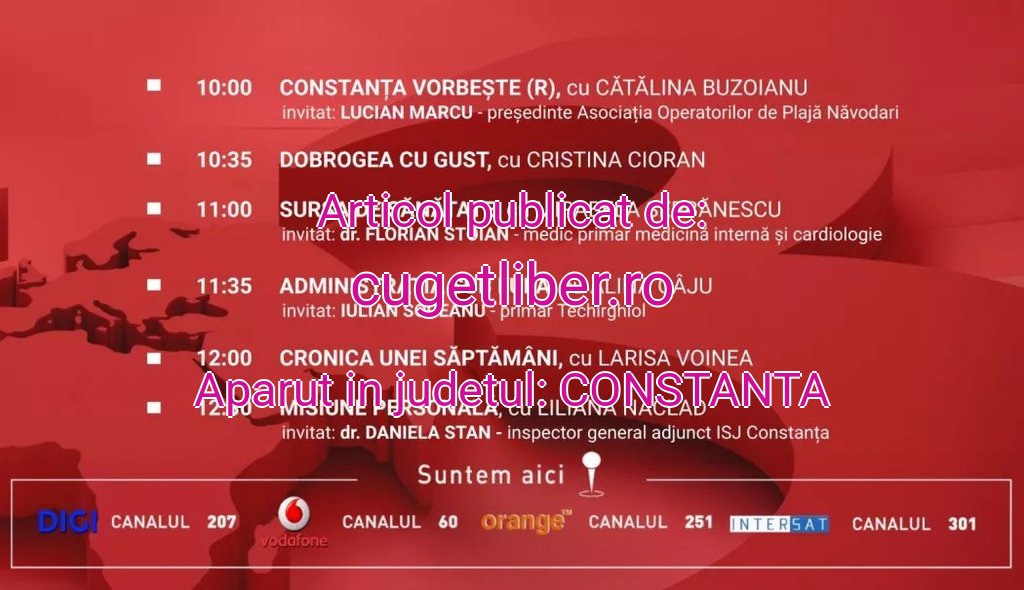 10:00 CONSTANȚA VORBEȘTE (R), cu CĂTĂLINA BUZOIANU