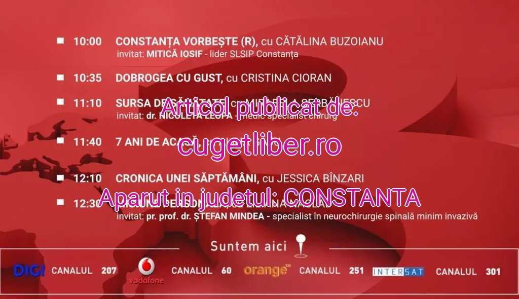 La ora 10:00, emisiunea „Constanța Vorbește”, realizată de Cătălina Buzoianu, îl are invitat pe Mitică Iosif, lider SLSIP Constanța, pentru a discuta despre problemele și inițiativele din domeniul social.