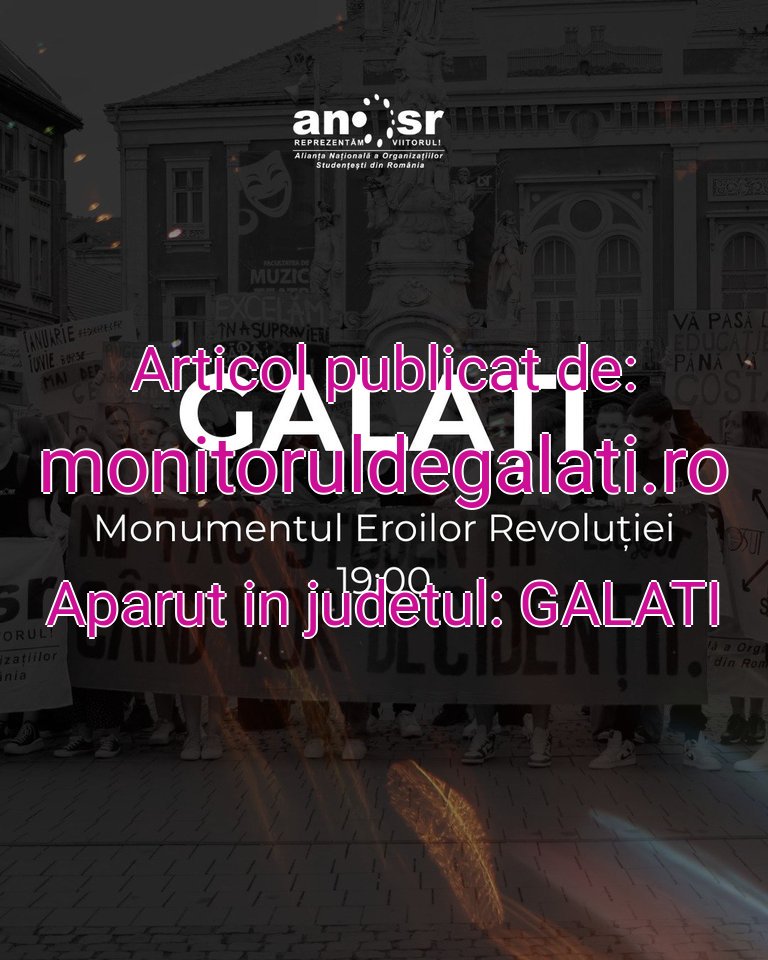 Alianţa Naţională a Organizaţiilor Studenţeşti din România (ANOSR) anunţă organizarea manifestelor din 14.03.2026 şi în centrele universitare din Galaţi, Cluj-Napoca, Constanţa şi Alba Iulia.